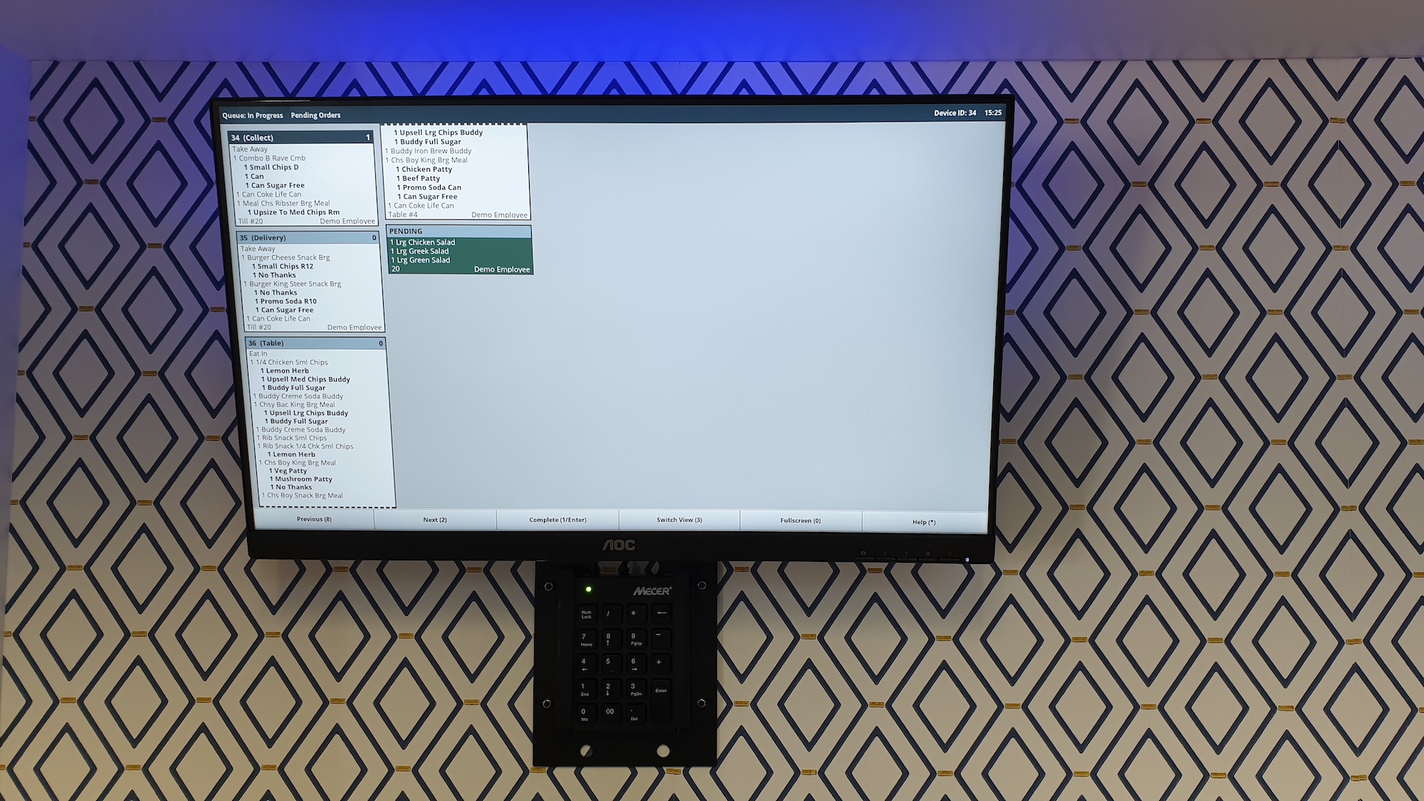 Busy stores with multiple makelines struggle to keep their makelines in sync. If one makeline receives a big order, then it goes out of sync and orders to start to come out in the wrong order causing complaints from customers. The Aura POS Kitchen Workflow Manager resolves this by allowing makelines to pull the next order onto their display when they are ready. All orders sit in a queue and appear on makelines in the order they are rung up, no matter which makeline is ready for the next order.